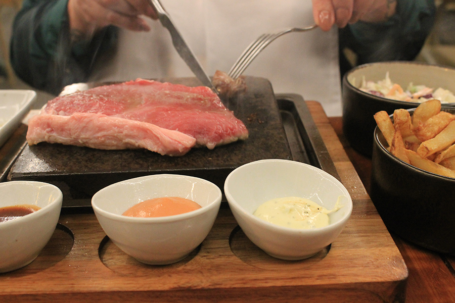“On the Stone” experience: a slab of heated stone brought to the table, where diners cook fish or meat to their preferred point. Both performance and meal, it brings flavour in its purest form — seared without oils or fats, and finished exactly as each guest desires.